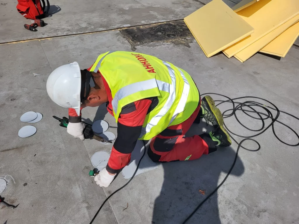В течение 5 рабочих дней мы обварили 3 вентшахты, 8 опор вентсистемы, 4 кабельного ввода трубок кондиционера, поставили 25 заплаток, герметизировали примыкания.