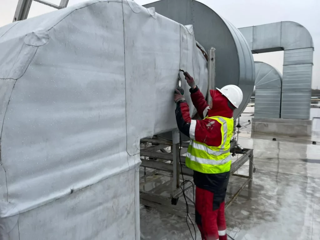 Ремонт протечек мембранной кровли Мега Дыбенко