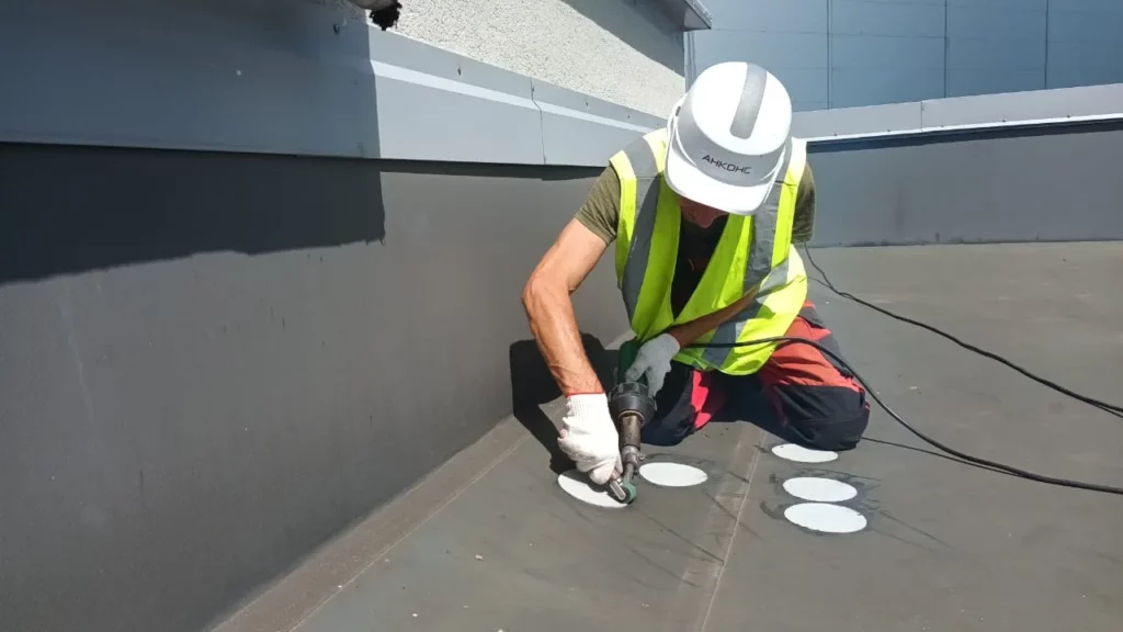 Установка заплат на плоской кровле на ТРК Парк Хаус