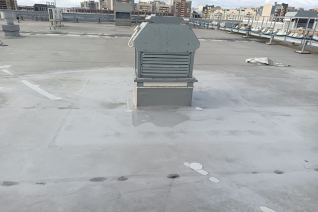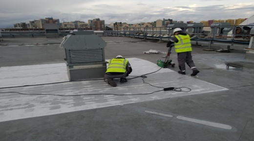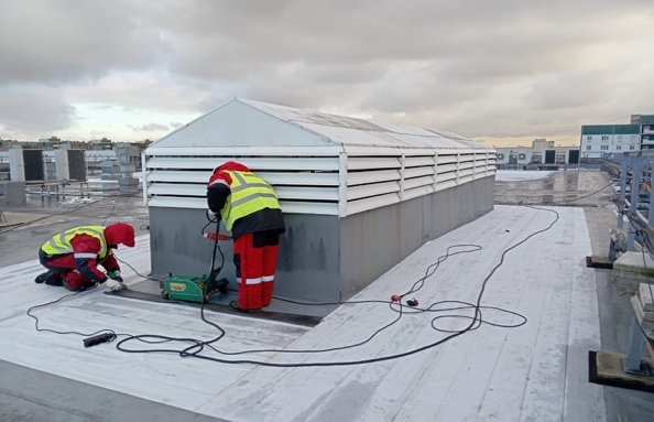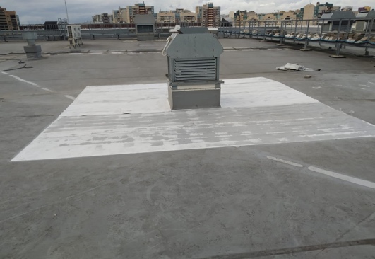 2. Устранение обнаруженных повреждений вокруг люков и вентиляторов дымоудаления: постановка заплат, постановка гидроизоляционной полосы на сварной шов.