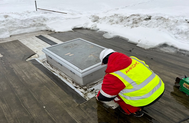 Ремонт противопожарной ткани вокруг световых фонарей